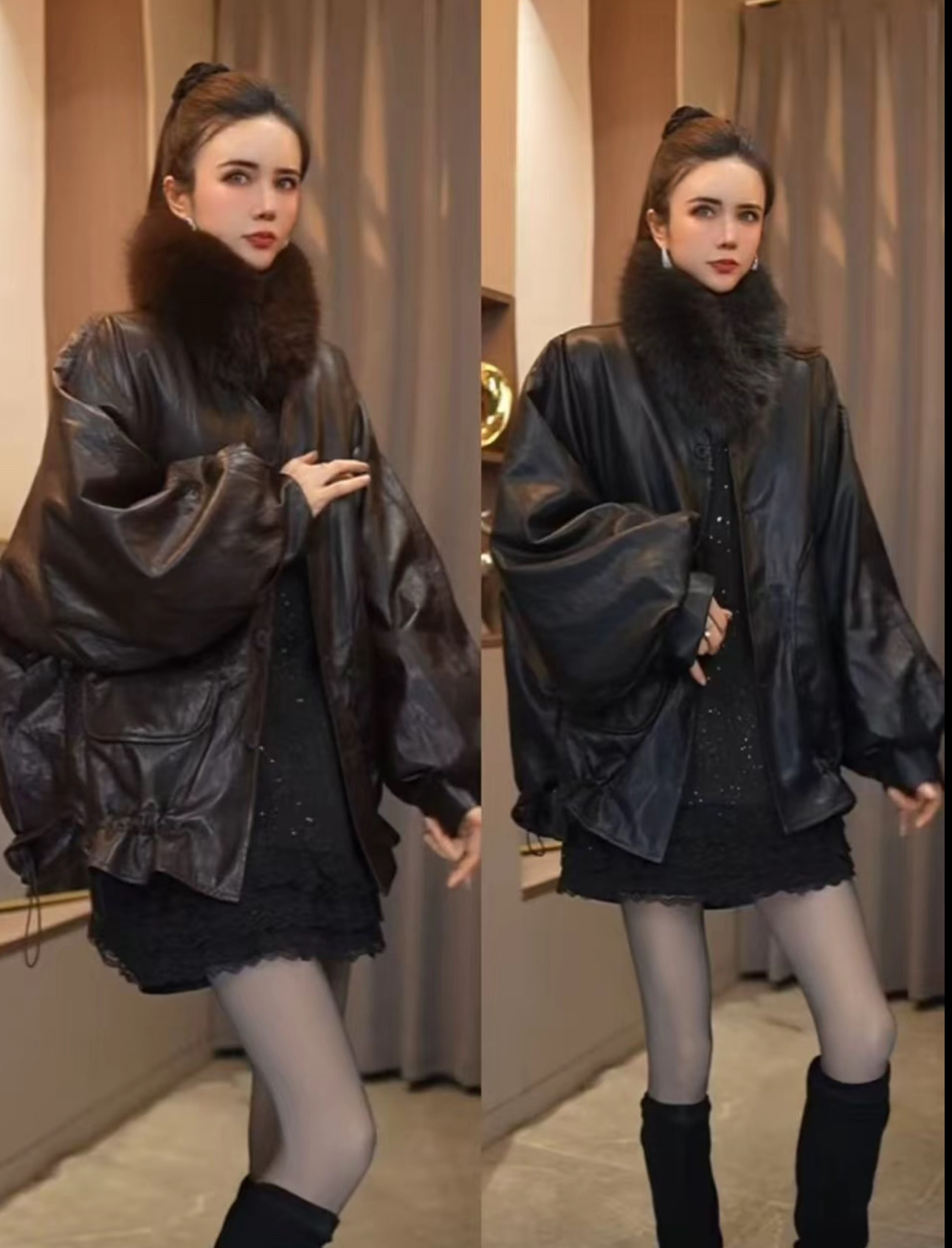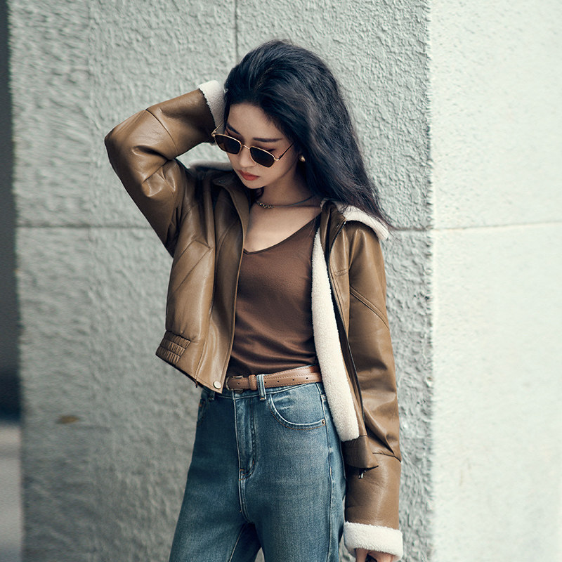 柒量一裁小个子内里加绒皮衣外套2025新款今年流行女外套3468