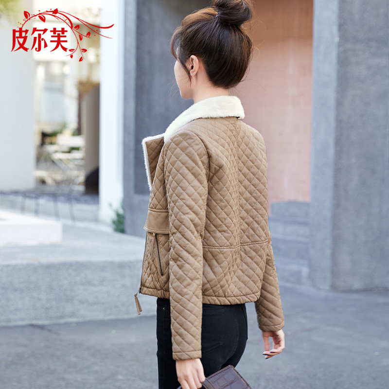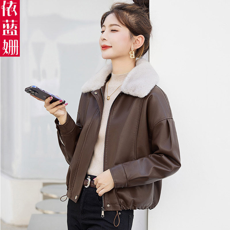 2025秋冬网红新款加绒皮衣外套女韩系减龄羊羔毛大翻领PU皮毛一体