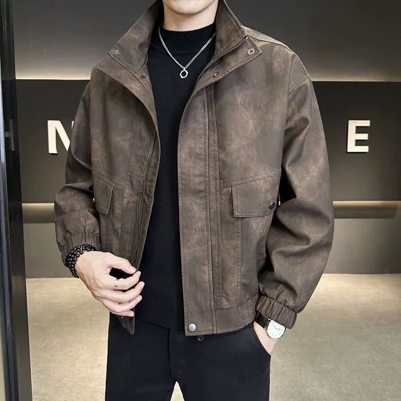 美拉德复古男士加绒皮衣外套2025秋冬款废土机车风皮夹克休闲上衣