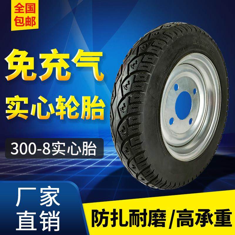 工地手推车 300-8实心轮胎 电动三轮车灰斗车3.00-8免充气橡胶轮