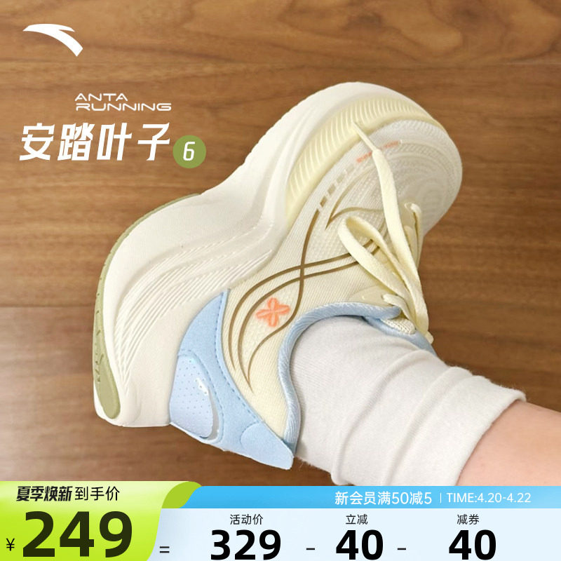 安踏叶子5女鞋厚底跑步鞋春夏足弓支撑女鞋轻便减震透气运动鞋女