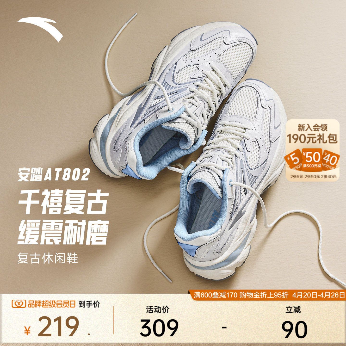 安踏AT802丨复古跑步鞋缓震回弹休闲鞋女潮流百搭运动鞋软底女鞋