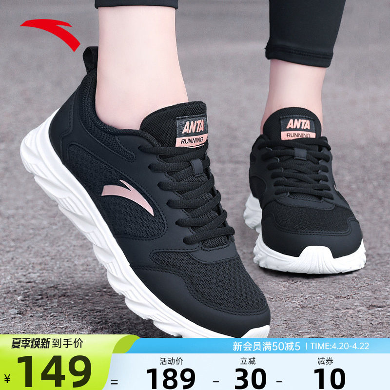 安踏女鞋黑色运动鞋网面女士妈妈软底防滑2026新款夏季透气跑步鞋