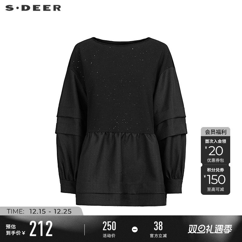 sdeer圣迪奥冬季女装时尚圆领拼接灯笼袖卫衣外套S244Z2207