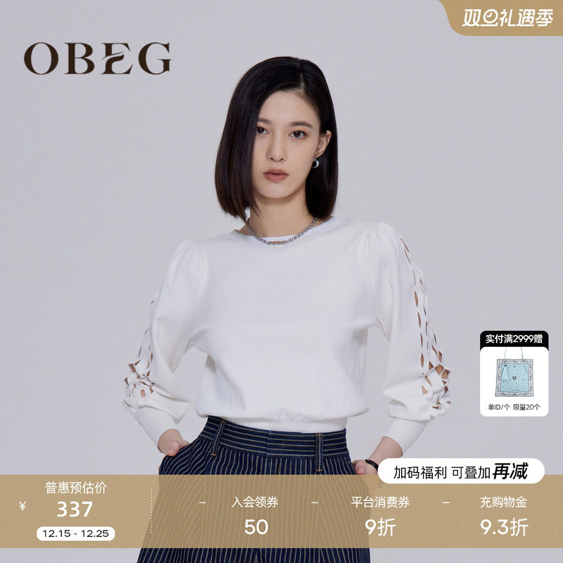 OBEG欧碧倩镂空优雅针织衫百搭都市休闲气质灯笼袖卫衣女10443023