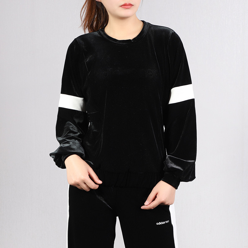 正品Adidas阿迪达斯冬季女子圆领休闲运动套头衫灯笼袖卫衣EI4364