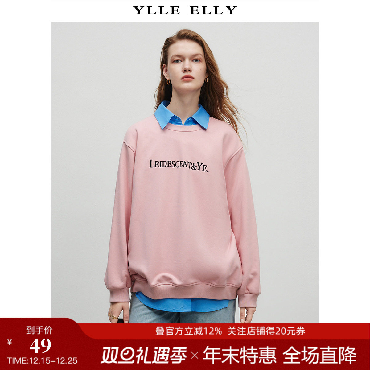 YLLE ELLY/衣衫妙影灯笼袖卫衣秋季新款圆领棉质宽松长袖套头上衣