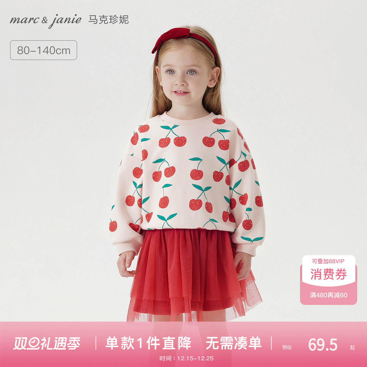 马克珍妮女童宽松满印灯笼袖卫衣 儿童红色卫衣童装春秋款231238
