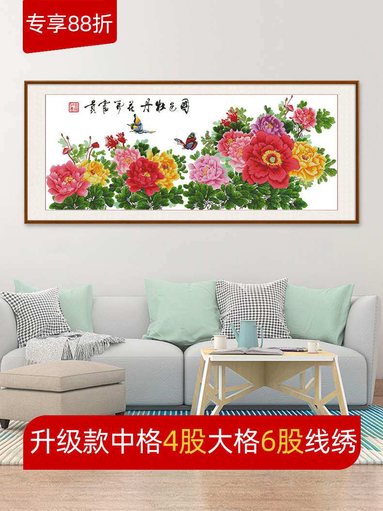 花开富贵十字绣六尺牡丹2米大画中国风刺绣大幅2026新款线绣客厅