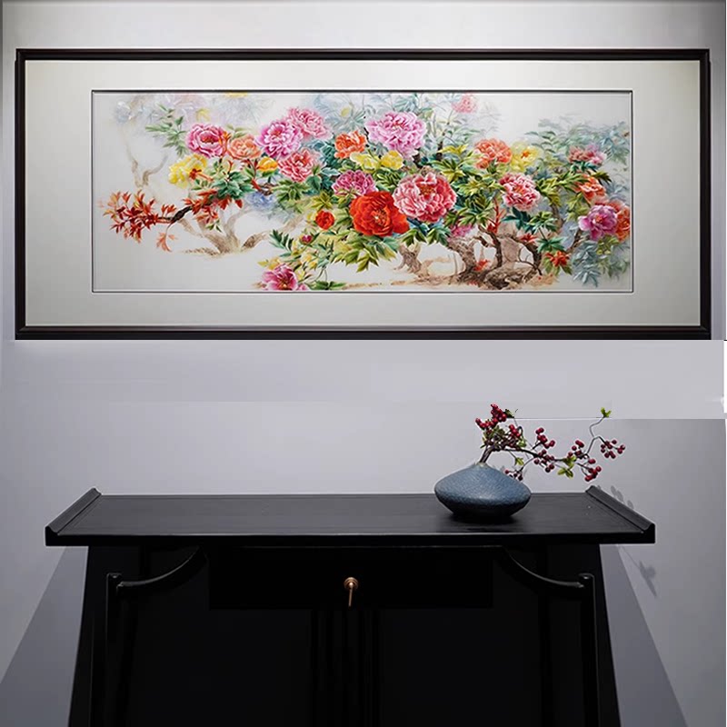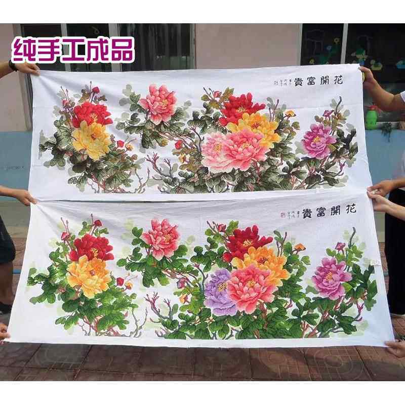 花开富贵春机绣十字绣成品六尺牡丹绣好的客厅大幅简约装饰画出售