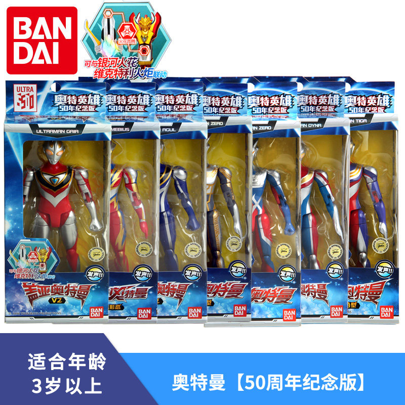 万代银河奥特曼50周年纪念版发声可动人偶赛罗迪迦梦比优斯戴拿