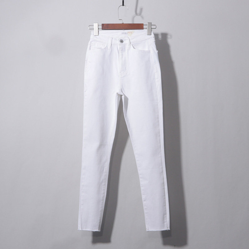白色丰胯小脚裤~韩女纯欲简约铅笔裤修身紧身高腰毛边弹力牛仔裤