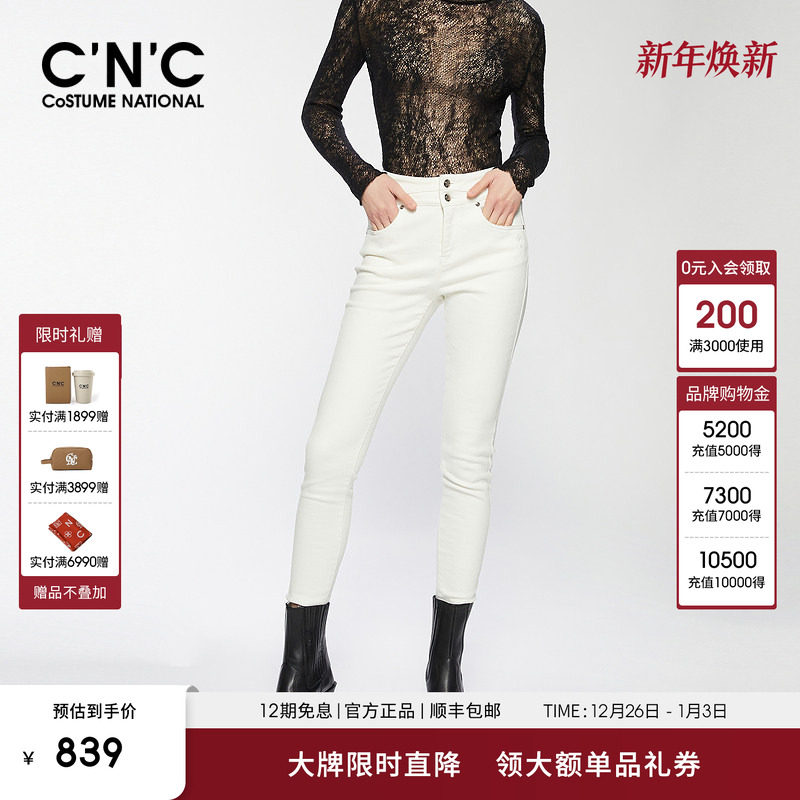 【大牌直降】CNC女装 高腰白色牛仔裤女秋修身外穿显瘦小脚铅笔裤