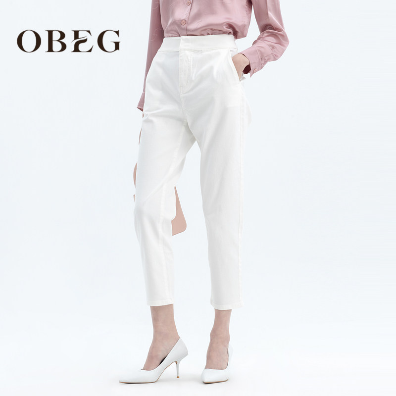 OBEG欧碧倩秋季白色牛仔铅笔裤女通勤烟管裤10423030
