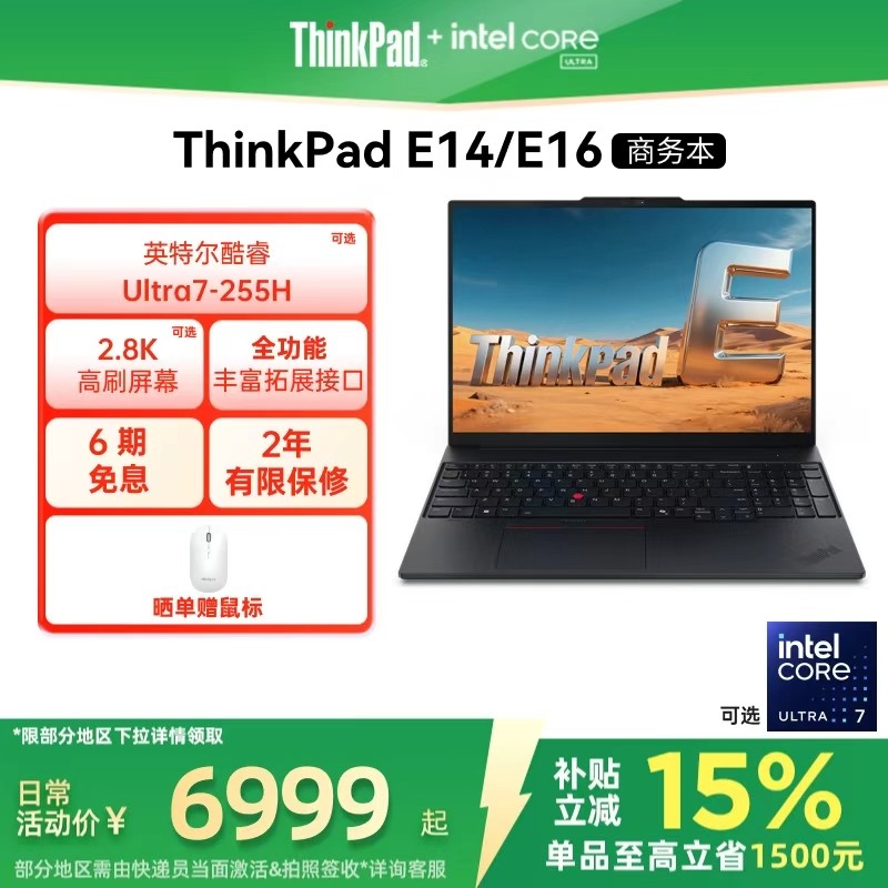 【政府补贴】联想ThinkPad E14E16英特尔酷睿Ultra 32G 1T商务办公学生游戏手提笔记本电脑官方旗舰店