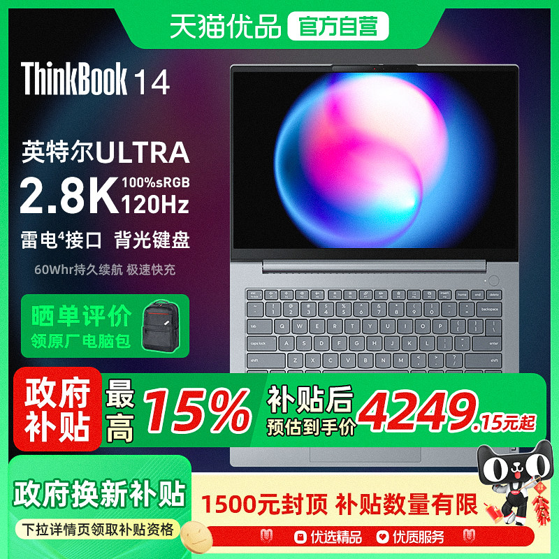 联想国家补贴15%ThinkPadThinkBook 14 2025酷睿版Ultra5/Ultra7标压14英寸2.8K屏大学生手提便携笔记本电脑