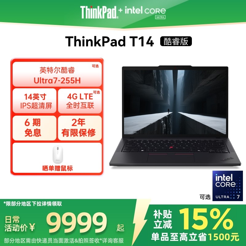【2025新款】联想ThinkPad T14 英特尔酷睿Ultra5/7 14英寸编程设计商务办公轻薄手提ibm笔记本电脑官方旗舰
