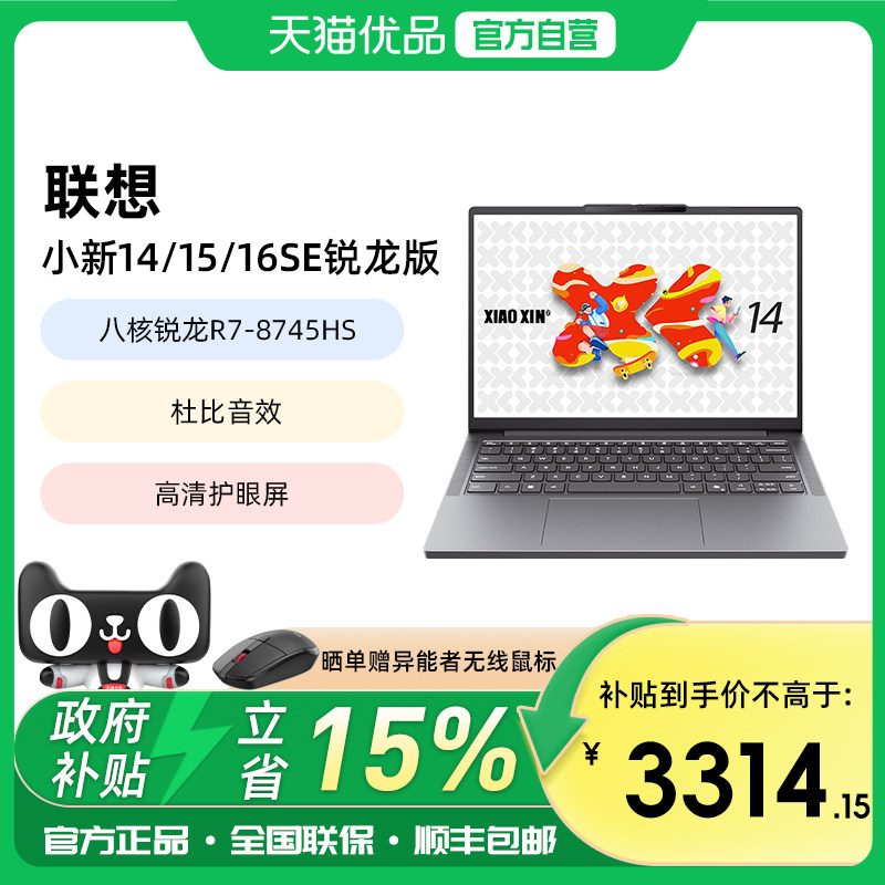 【政府补贴15%】联想小新14/15/16SE 锐龙 R7-7845HS轻薄金属机身学生办公设计制图高清屏笔记本电脑手提网课