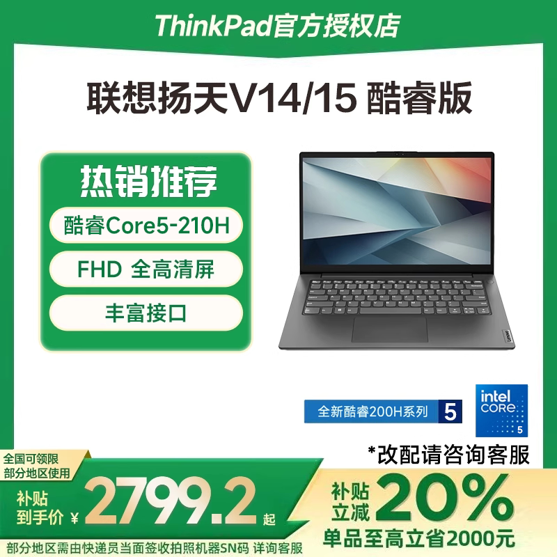 【国家补贴15%】联想笔记本电脑扬天V14/V15 酷睿i5/锐龙R7 轻薄便携手提学生网课办公商务ThinkPad官方旗舰