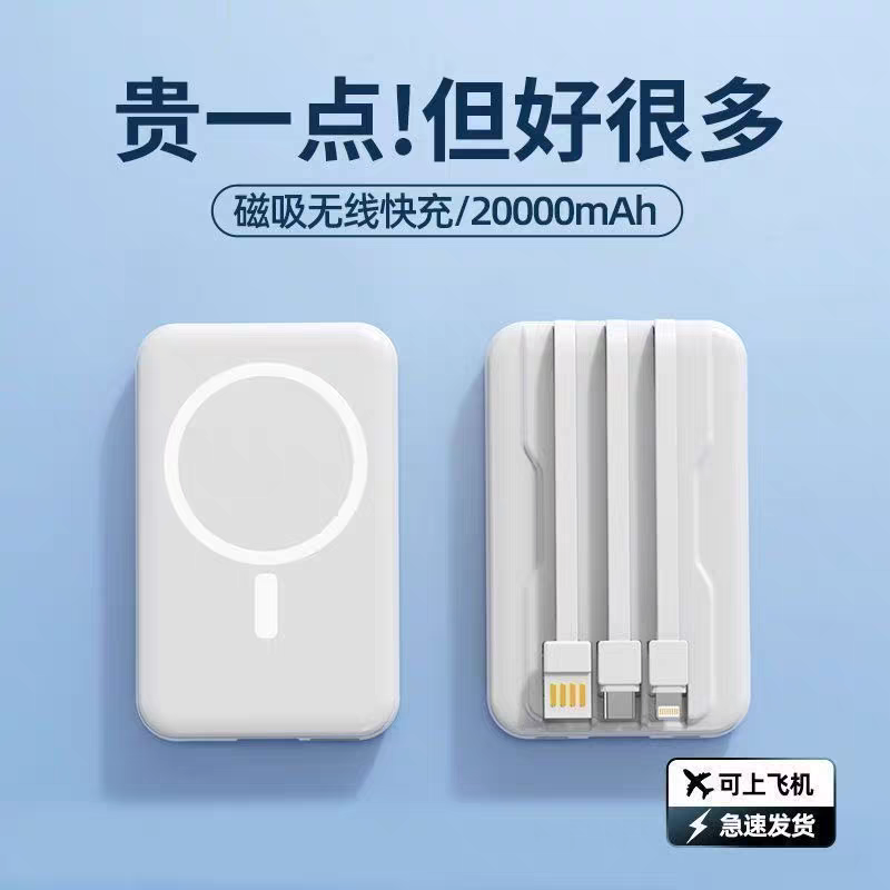 3C认证可上飞机快充飞毛腿充电宝20000毫安磁吸无线充自带线通用