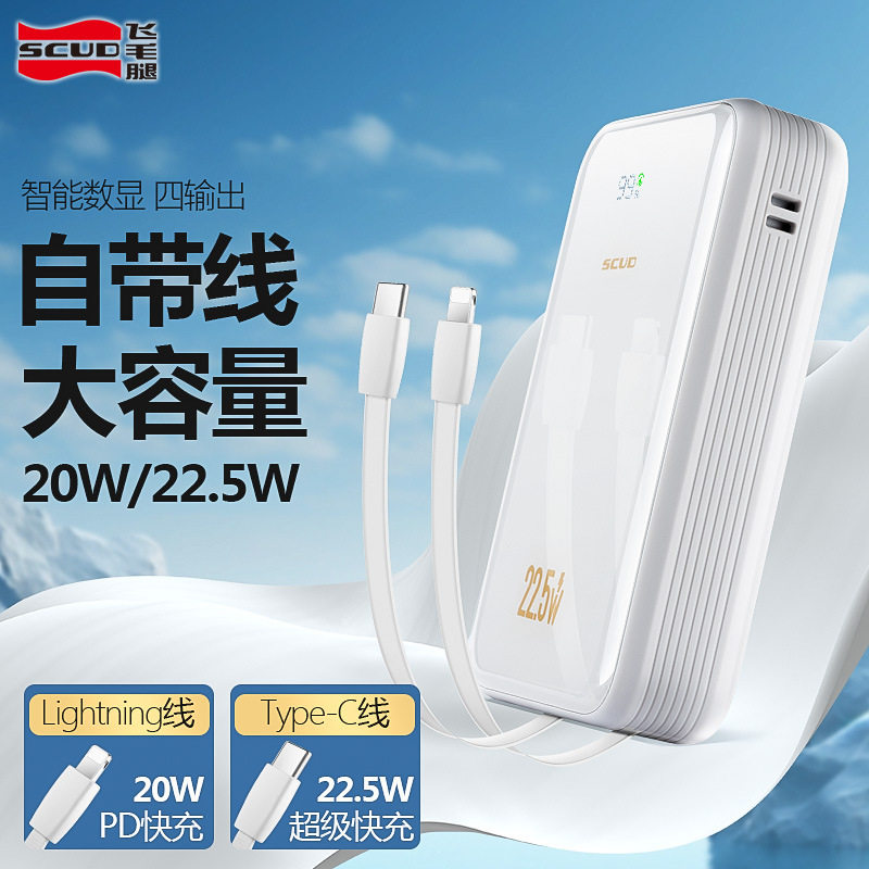 飞毛腿充电宝20000毫安适用于苹果PD双向快充22.5W自带线手机通用