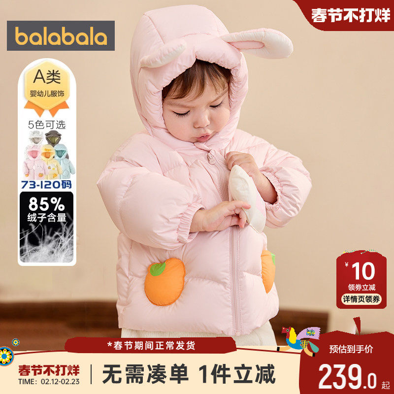 巴拉巴拉童装宝宝羽绒服冬装2025新款婴儿轻薄儿童外套女童拜年服