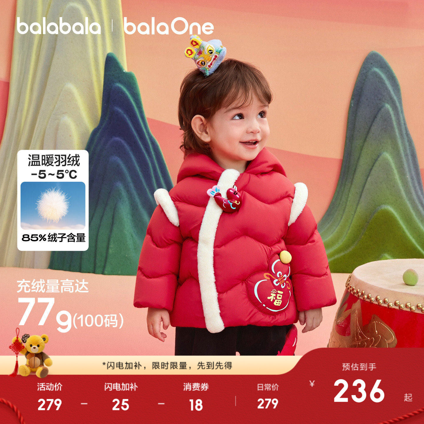 巴拉巴拉童装儿童羽绒服女童2026新款冬装红色外套宝宝拜年服婴儿
