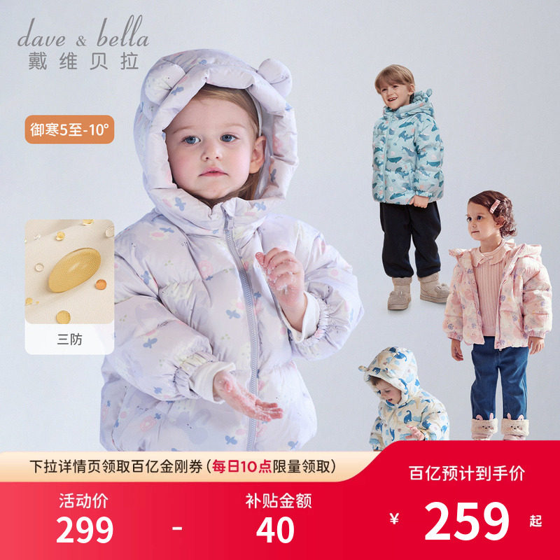 戴维贝拉儿童羽绒服冬装新款男童女童三防厚外套宝宝婴儿保暖童装