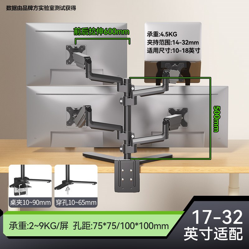 2/3/4屏多屏笔记本双屏三屏显示器支架桌面免打孔一托二无缝拼接