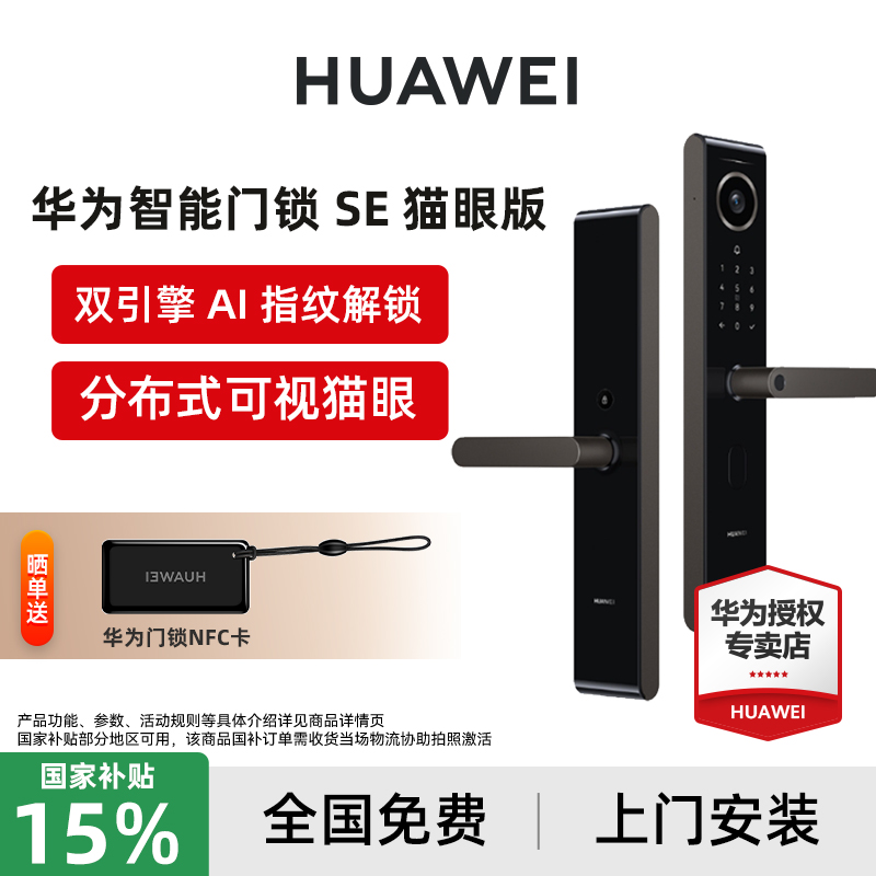 华为智能门锁SE猫眼版AI指纹解锁家用多屏可视猫眼电子密码锁防盗