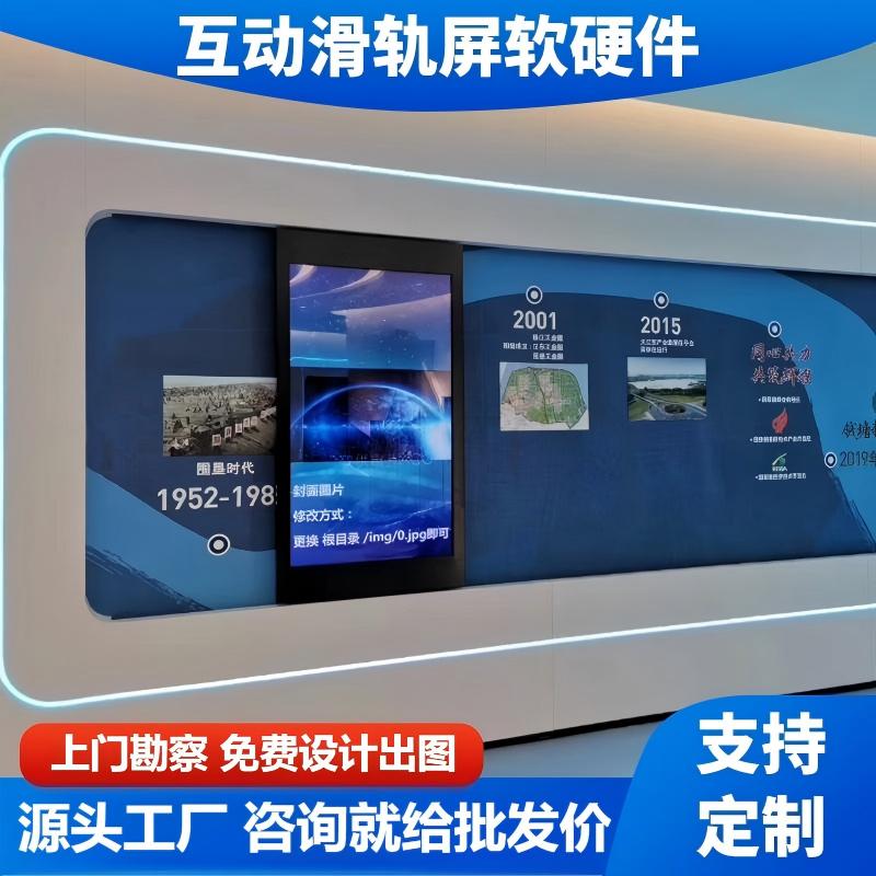 智能互动滑轨屏数字展厅移动开合多屏联动导轨屏触摸一体机显示屏