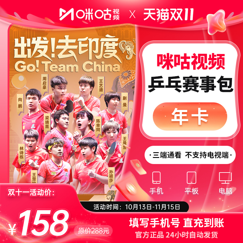达人专属【乒乓年卡】咪咕视频乒乓赛事包12个月vip wtt 多屏同看