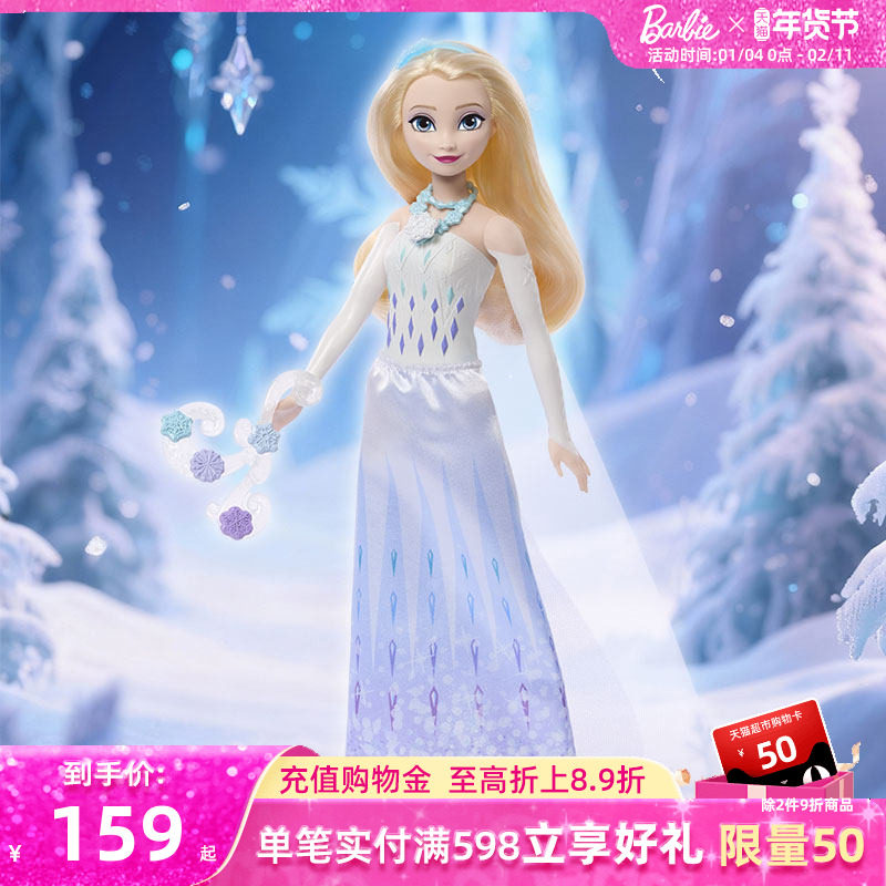 芭比娃娃迪士尼冰雪奇缘冰雪系列玩具艾莎音乐女童礼物穿搭过家家