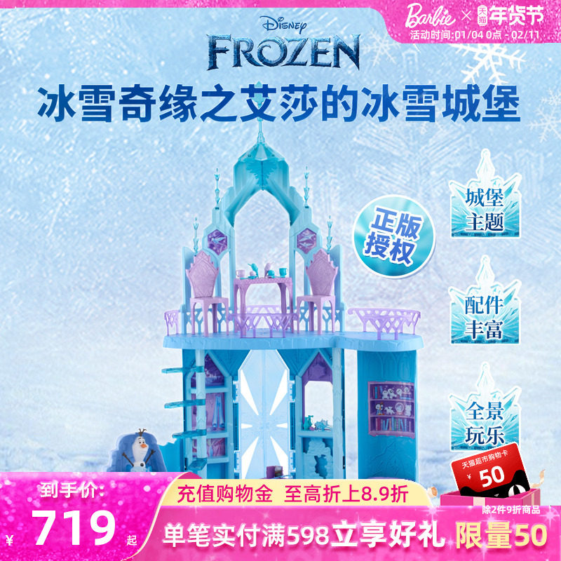 芭比娃娃迪士尼冰雪奇缘之艾莎的冰雪城堡女孩玩具过家家生日送礼