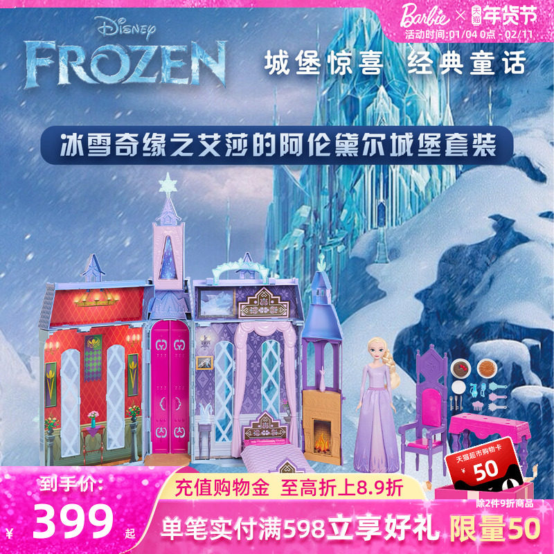 芭比Barbie甜心娃娃冰雪奇缘之艾莎的阿伦黛尔城堡套装生日礼物