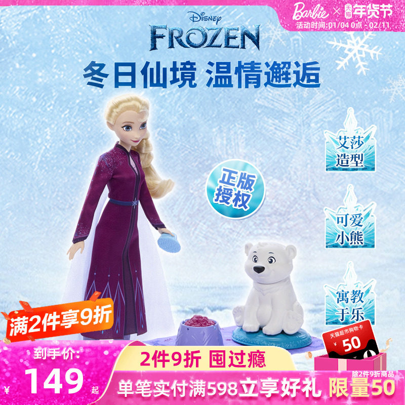 芭比娃娃迪士尼冰雪奇缘之惊喜冬季盛会艾莎玩具套装女孩礼物送礼