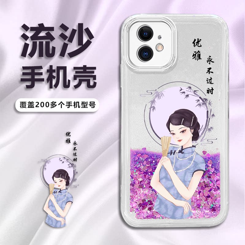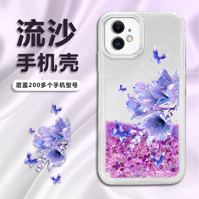适用苹果13手机壳OPPO Reno9透明vivo x90镜头全包荣耀80防摔华为P60软胶保护套紫钻石IQ00Z7流沙新品