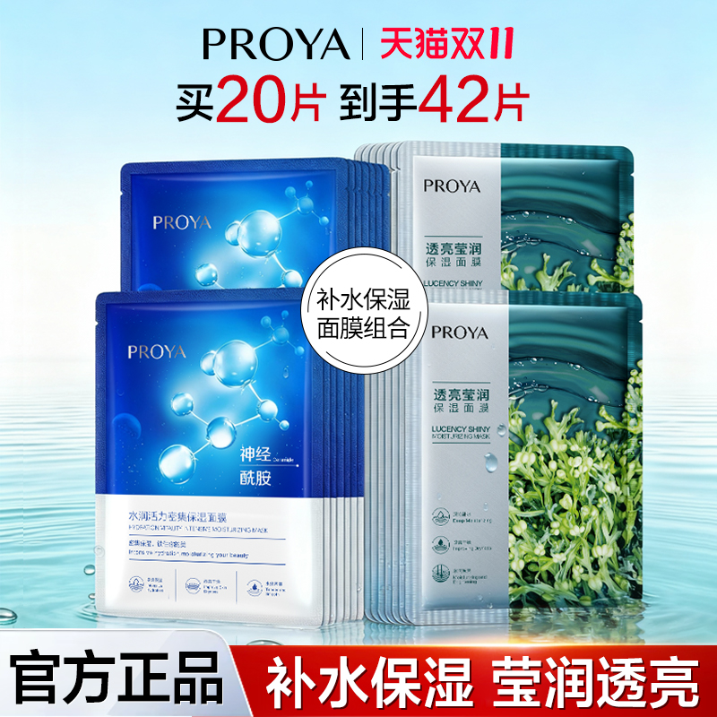 PROYA/珀莱雅面膜小球藻透亮莹润保湿补水官方旗舰店正品送护手霜
