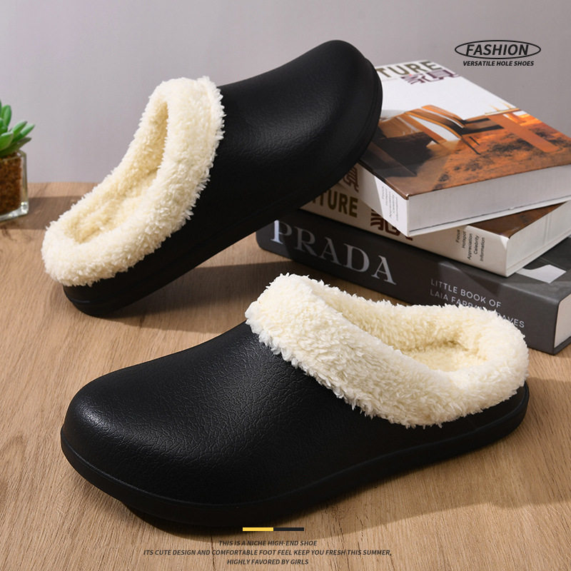 防水棉拖鞋女2025新款秋冬季外穿室内家居加绒厚底踩屎感情侣棉鞋