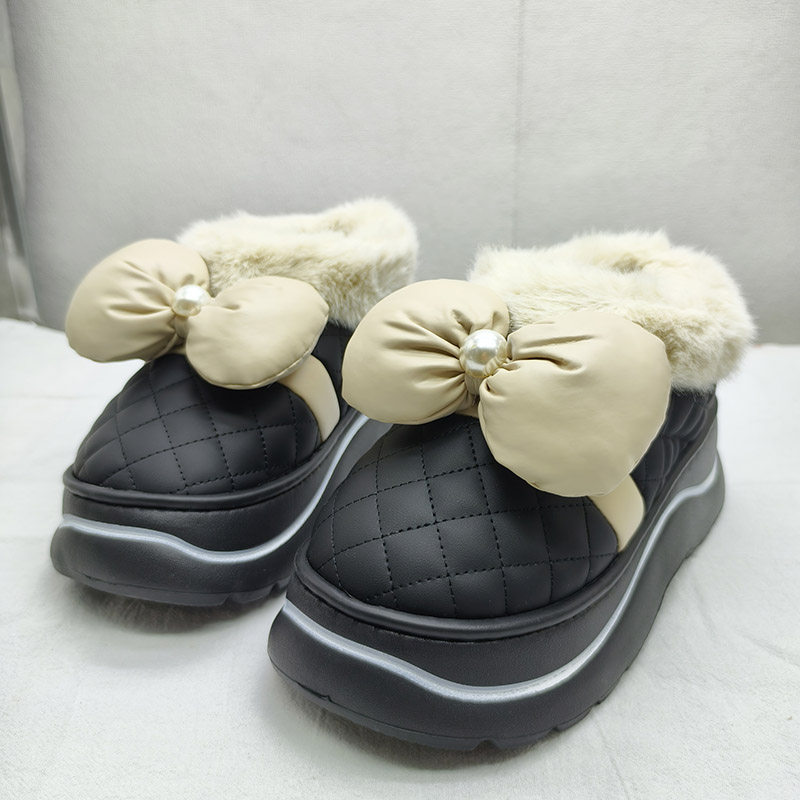 冬季棉拖鞋女厚底舒适轻底全包棉鞋加绒保暖外穿蝴蝶结公主松糕底