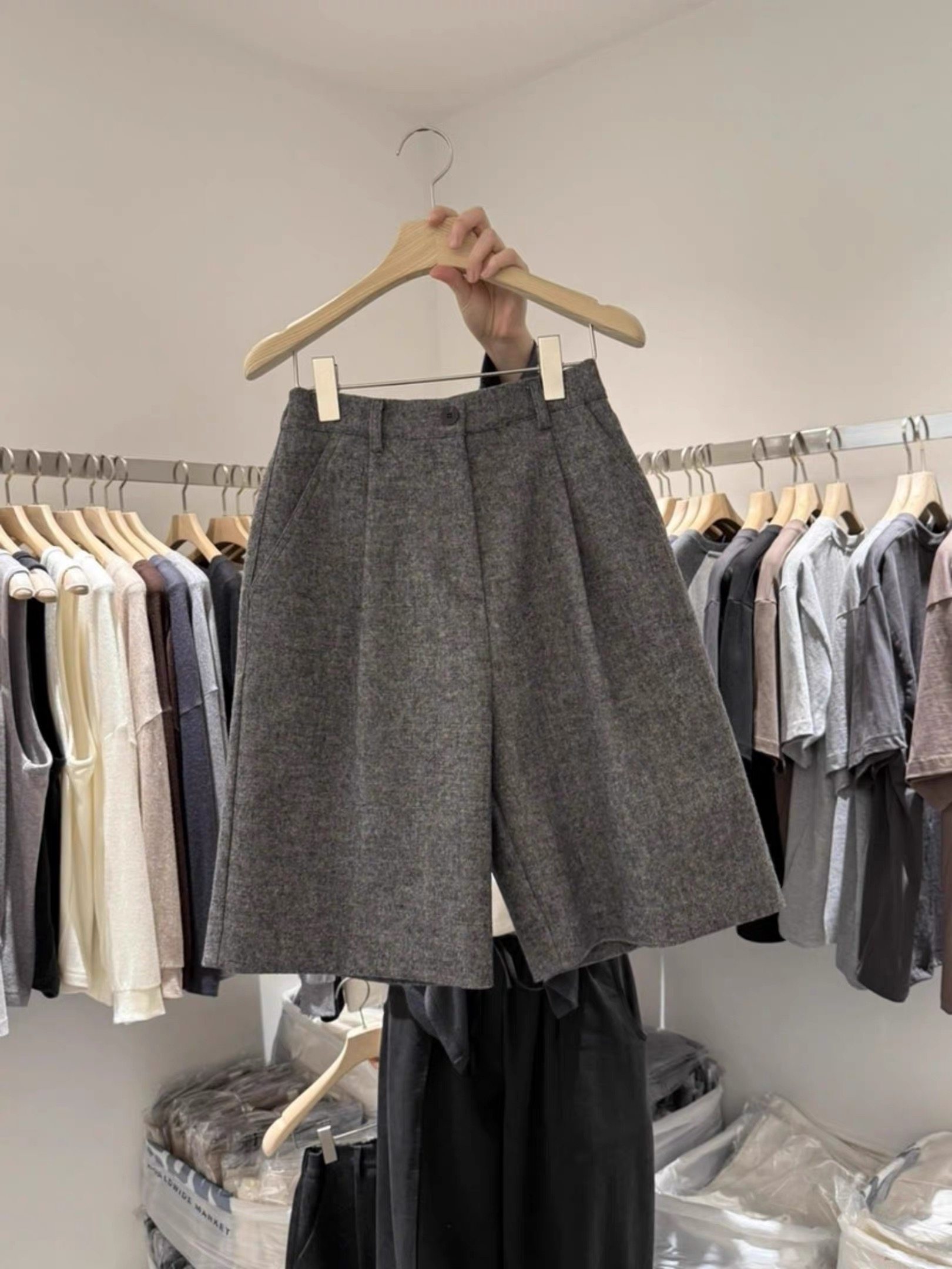 毛呢阔腿短裤女士2025秋冬韩系高腰中裤小个子显瘦直筒a字五分裤