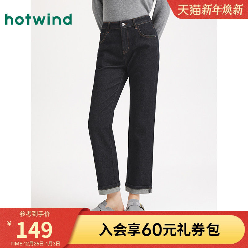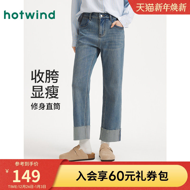 热风女士直筒牛仔裤2025年秋季新款翻边直筒牛仔裤修身显瘦长裤