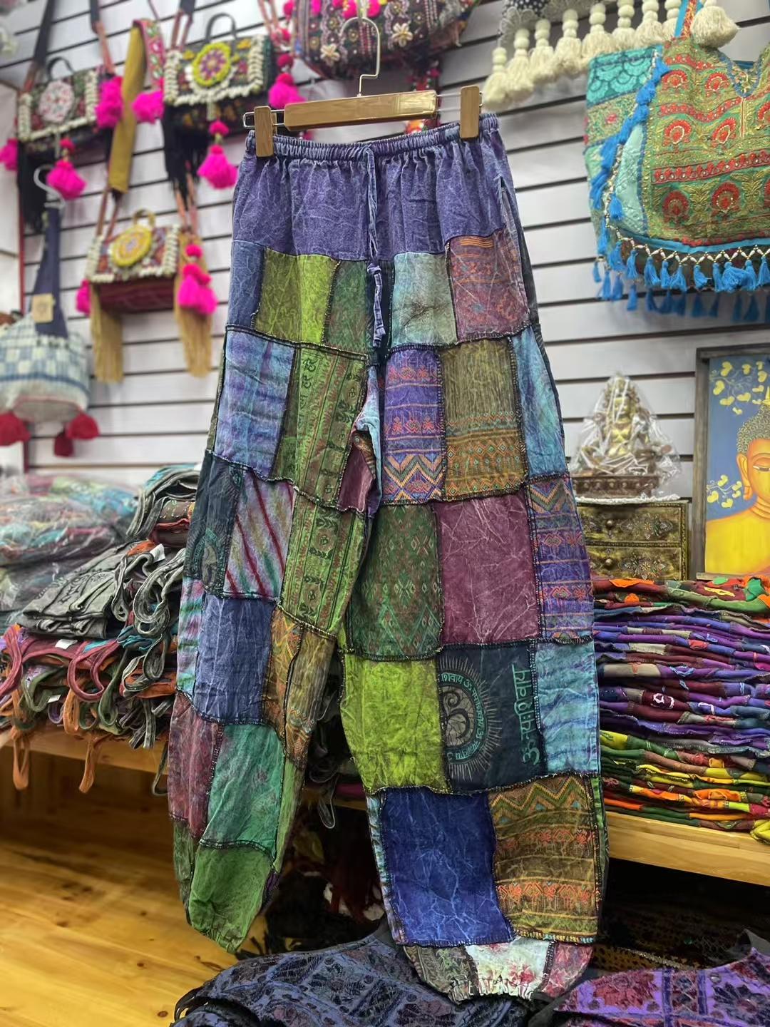 夏萨珑!夏季泰国泰棉民族风女装拼接大码宽松做旧嬉皮流浪灯笼裤