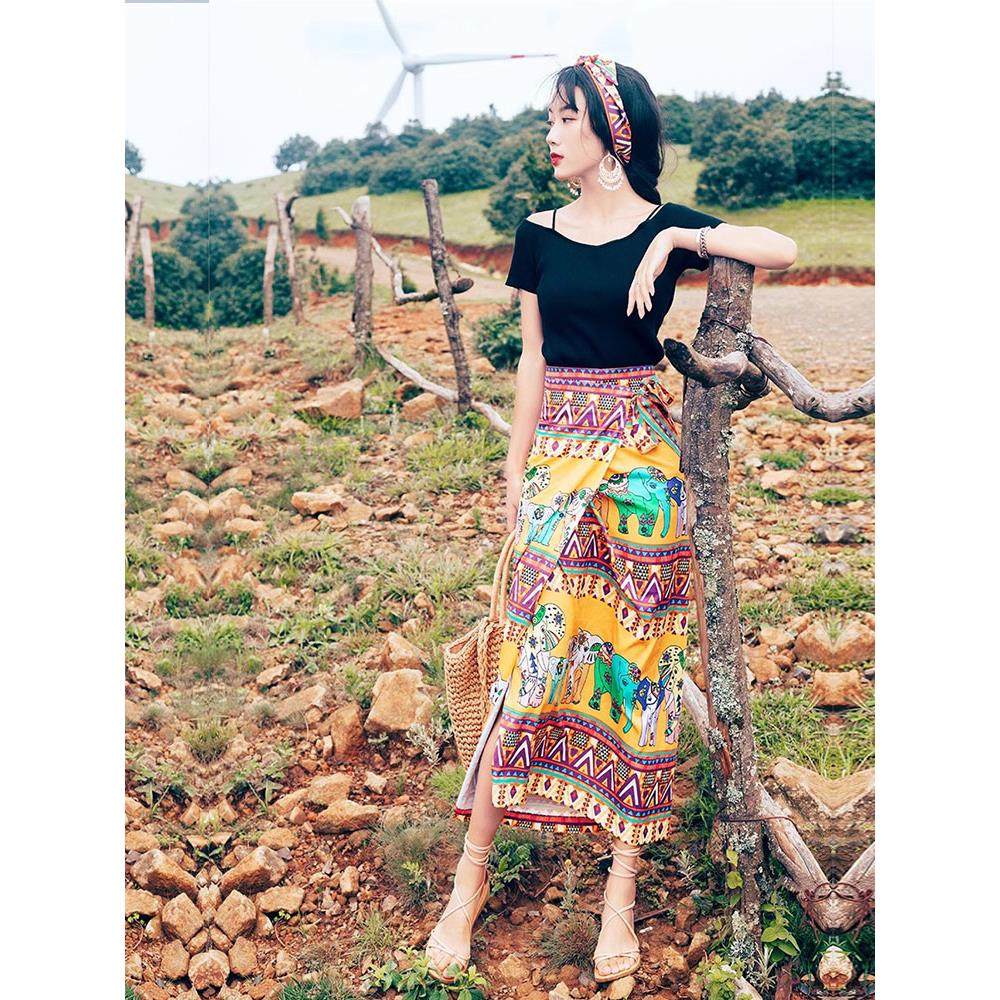 云南民族风女装一片式开叉半身裙夏季薄款泰国西双版纳度假裙穿搭