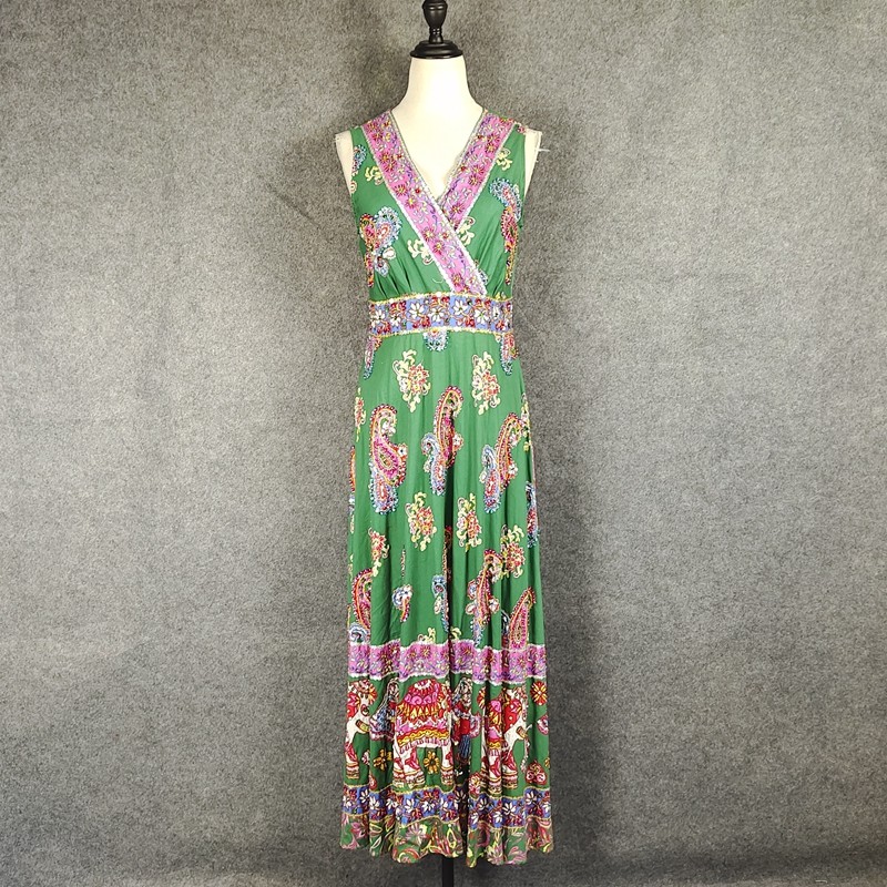 大码棉绸跨境外贸亚马孙泰国民主风印花人造棉宽松显瘦中长沙滩裙