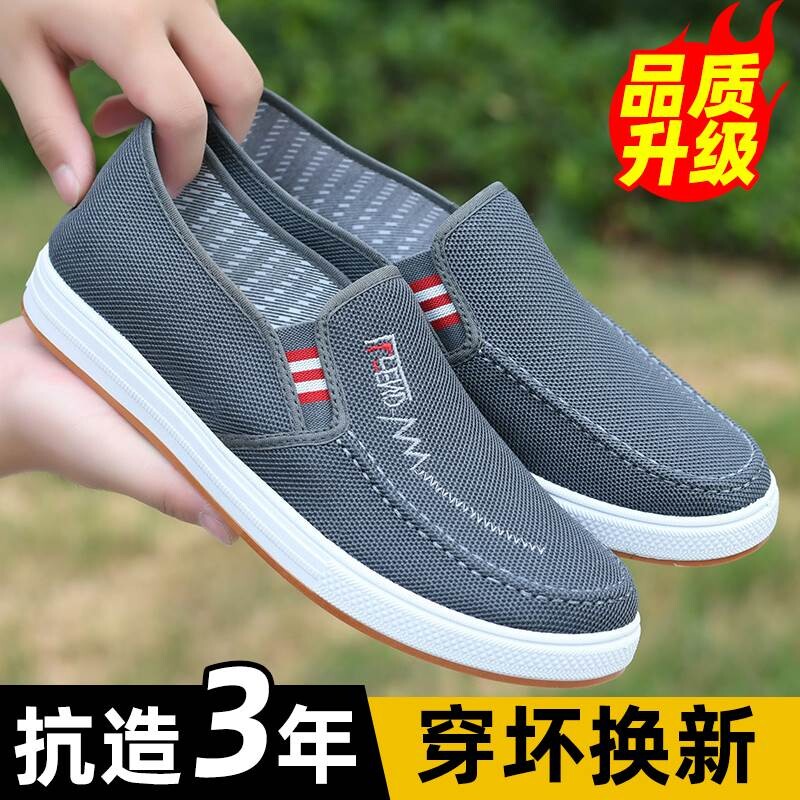 布鞋男透气耐磨牛筋底工作鞋中老年防滑一脚蹬爸爸鞋老北京帆布鞋
