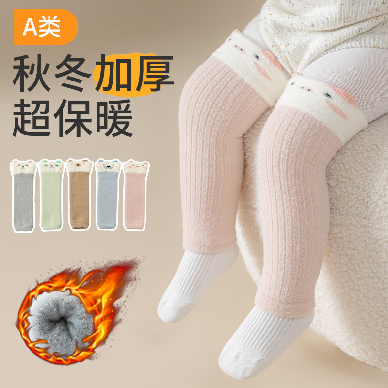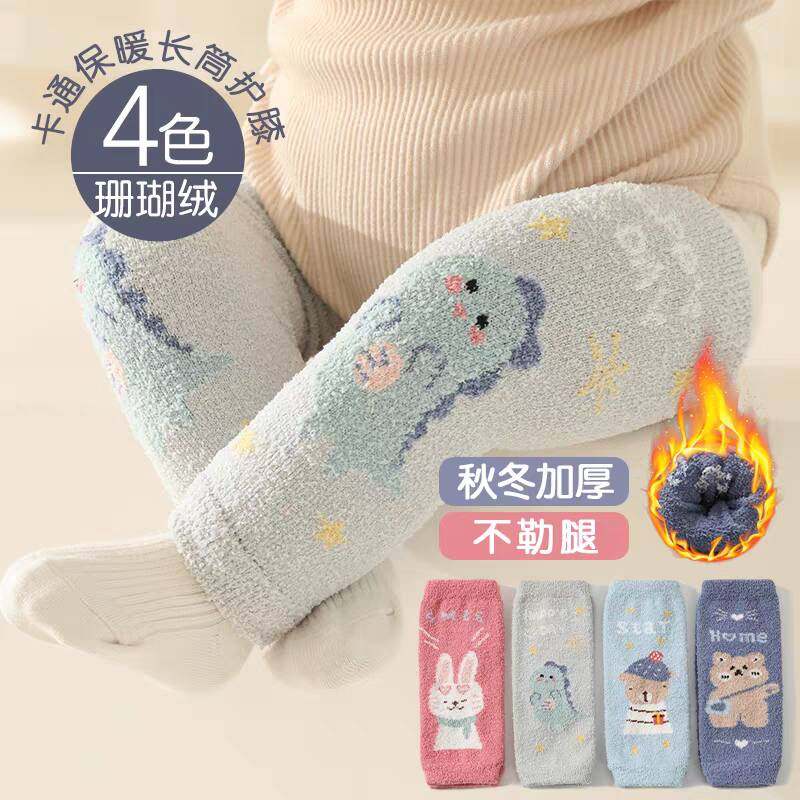 宝宝袜套秋冬季珊瑚绒护膝儿童加厚隔凉爬行护膝护肘婴儿长筒护腿