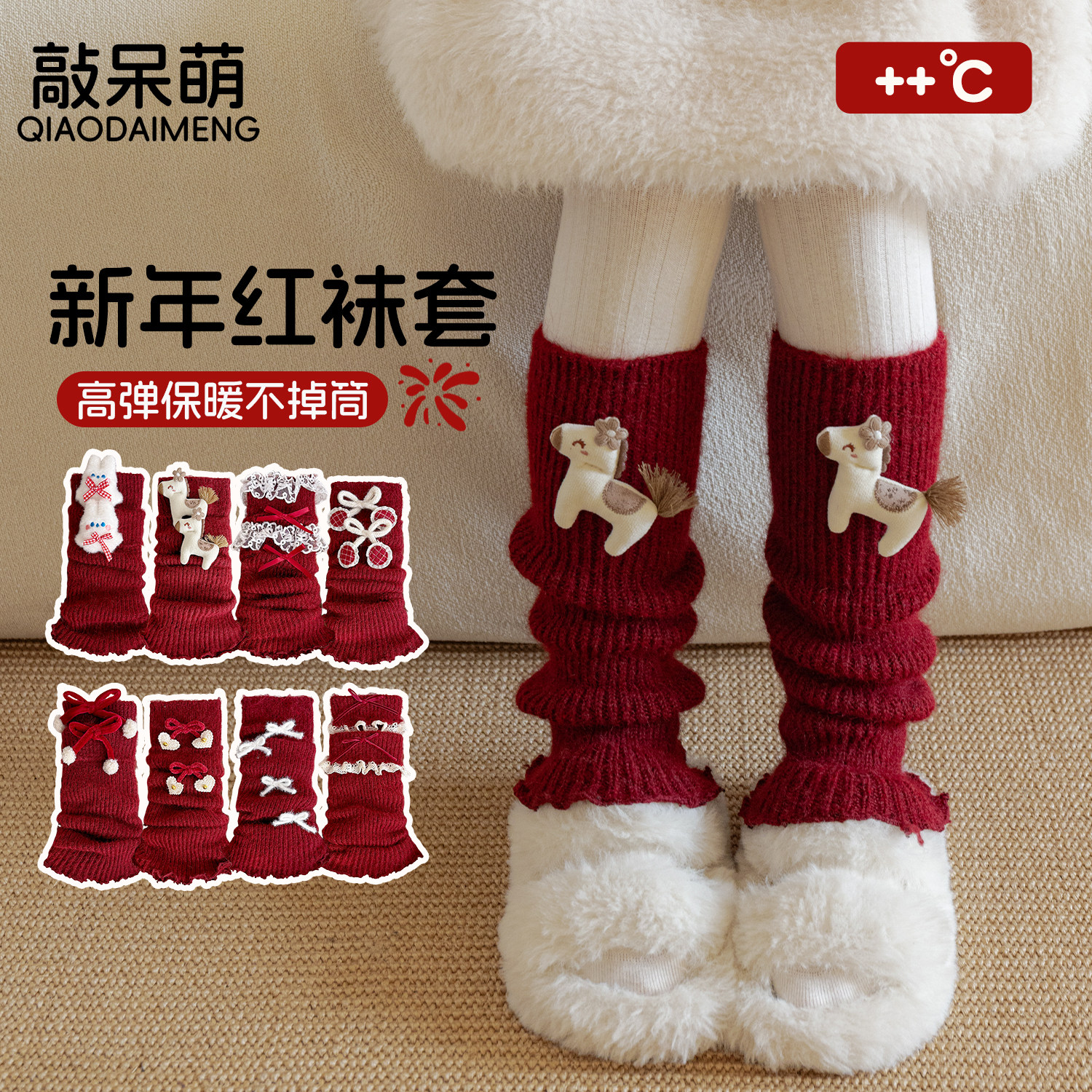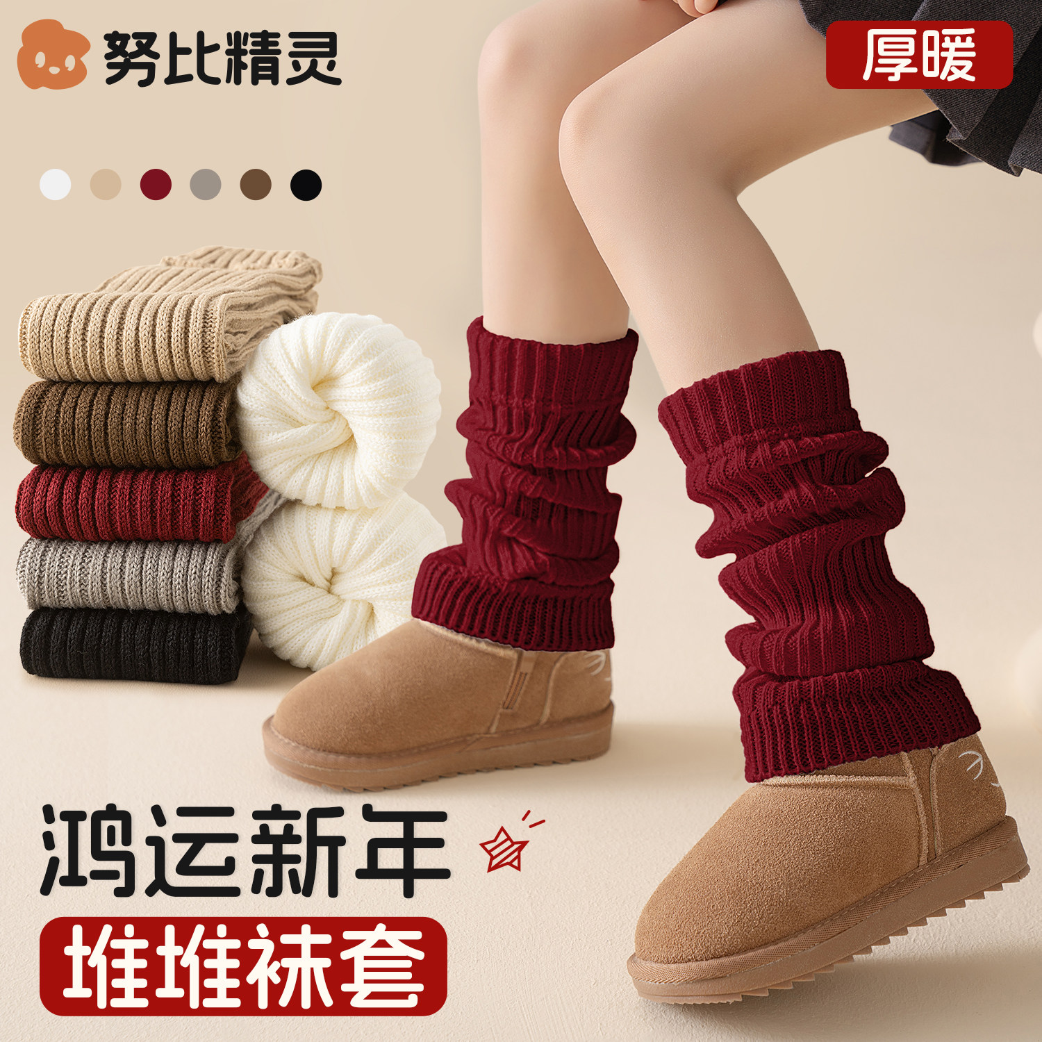 新年红色儿童袜套堆堆袜女童冬季加厚羊毛腿套宝宝马年本命年腿袜