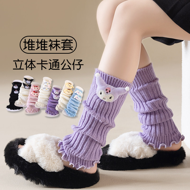女童宝宝袜套秋冬凯蒂猫库洛米堆堆袜木耳边不勒秋冬保暖女孩腿套