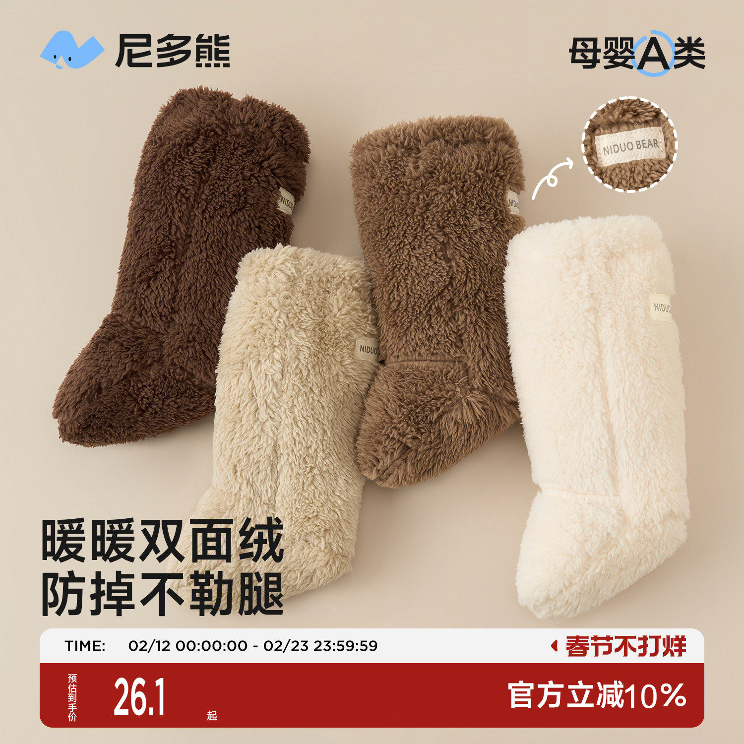 尼多熊新生婴儿袜套秋冬季加厚加绒宝宝包脚套外出保暖鞋套毛绒袜